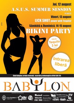 Bikini Party Data14 aug. sâm— 15 aug. DumAccessgratuitComentarii0Trackbacks0 Sâmbătă, 14 August 2010, și duminică, 15 August 2010, începând cu ora 22:00, Club Babylon Suceava te invită la Bikini Party. Tweet