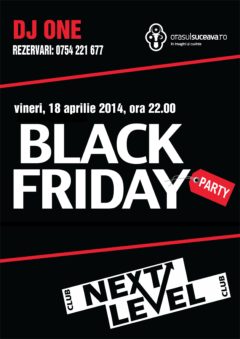 Black Friday Party Data18 apr. vin 22:00AccessgratuitComentarii0Trackbacks0 Vineri, 18 Aprilie 2014, începând cu ora 22:00, Next Level Club Suceava te invită la petrecerea intitulată Black Friday Party cu DJ One. Tweet