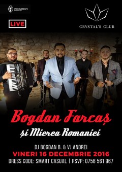 Vineri, 16 Decembrie 2016, începând cu ora 23:00, Crystal’s Club te invită la o petrecere susținută de Bogdan Farcaș.