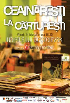 Ceainărești la Cărturești Data14 feb. vin 18:30AccessgratuitComentarii0Trackbacks0 Vineri, 14 Februarie 2014, începând cu ora 18:30, Ceainărești la Cărturești. Tema ediției: Iubirile lui DosToievski. Prezintă Cristina ONOFREI. Tweet