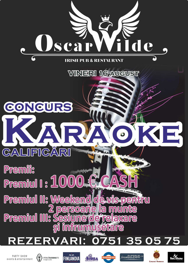 Vineri, 16 August 2013, începând cu ora 23:00, Oscar Wilde Suceava te invită la Concurs Karaoke – calificări.