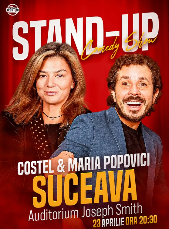 Joi, 23 Aprilie 2026, începând cu ora 18:00, respectiv ora 20:30 Auditorium Joseph Schmidt din Suceava te invită la un spectacol de stand-up comedy alături de Costel și Maria Popovici.