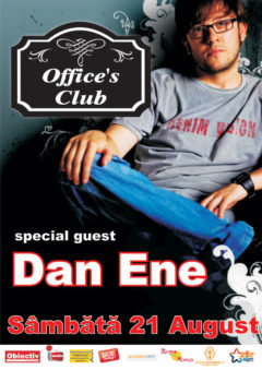 Dan Ene Data21 aug. sâm 23:00AccessgratuitComentarii0Trackbacks0 Sâmbătă, 21 August 2010, începând cu ora 23:00, Office’s Club Suceava te invită să te distrezi în compania lui Dan Ene. Tweet