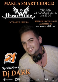Vineri, 22 August 2014, începând cu ora 23:30, Oscar Wilde Suceava te invită să te distrezi alături de DJ Dark.