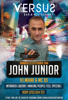 Sâmbătă, 20 Septembrie 2014, începând cu ora 22:30, VERSUS Suceava te invită să te distrezi alături de DJ John Junior (Dublin Pub Iași) și VJ Mihai (Fratelli Iași).