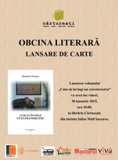 Vineri, 30 Ianuarie 2015, începând cu ora 18:00, Cărtureşti Suceava te invită la lansarea cărții intitulată Cum să învingi un extraterestru de Dumitru Parasaca.