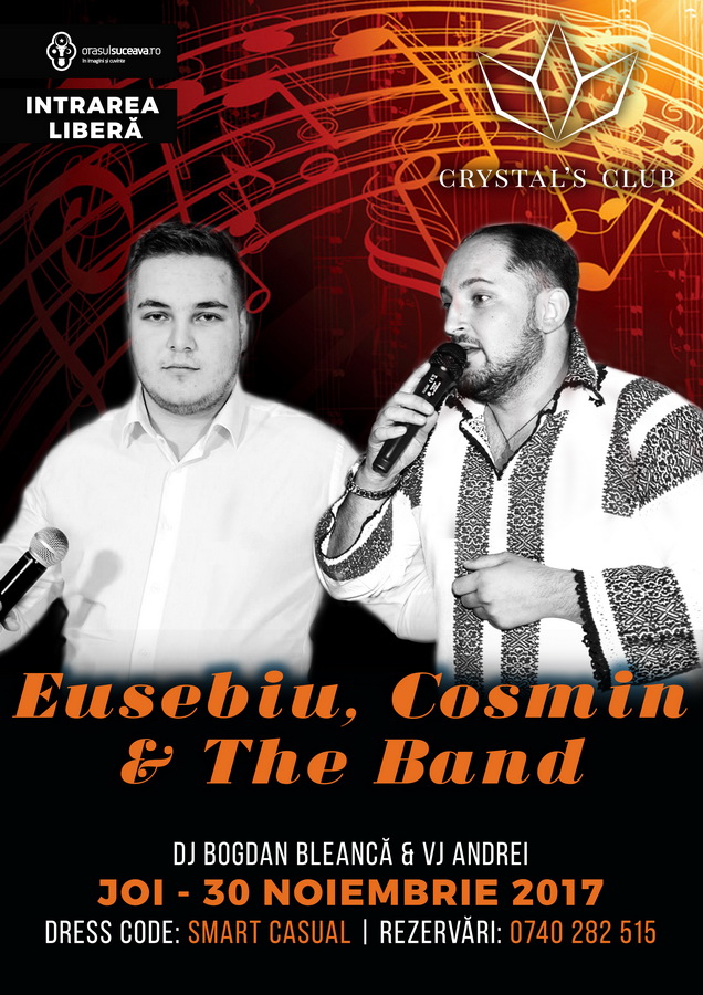 Joi, 30 Noiembrie 2017, începând cu ora 23:00, Crystal’s Club te invită la o petrecere alături de Eusebiu, Cosmin & The Band.