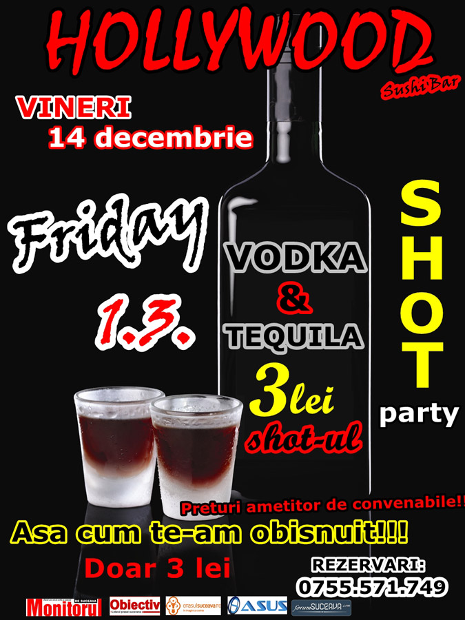 Vineri, 14 Decembrie 2012, începând cu ora 23:00, Hollywood Sushi Bar Suceava te invită la Friday 1.3 Party.