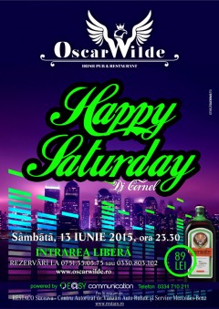 Sâmbătă, 13 Iunie 2015, începând cu ora 23:30, Oscar Wilde Suceava te invită la petrecerea intitulată Happy Saturday alături de DJ Cornel.