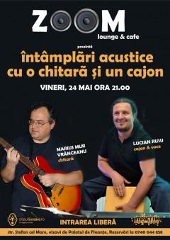 Vineri, 24 Mai 2013, începând cu ora 21:00, ZOOM Suceava te invită la Întâmplări acustice cu o chitară și un cajon cu Marius Mur Vrânceanu și Lucian Rusu.