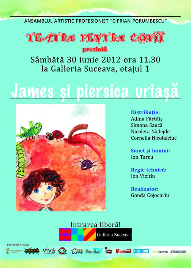 Sâmbătă, 30 Iunie 2012, începând cu ora 11:30, Galleria Suceava te invită la spectacolul de teatru James și Piersica Uriașă.
