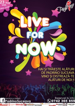 Sâmbătă, 23 August 2014, începând cu ora 22:00, Padrino Suceava te invită la petrecerea intitulată Live for now.