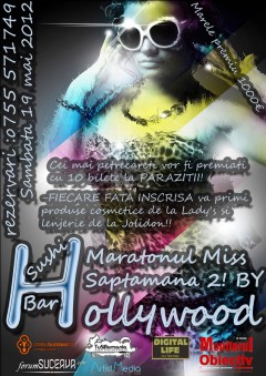 Sâmbătă, 19 Mai 2012, începând cu ora 23:00, Hollywood Sushi Bar Suceava te invită la Maratonul Miss #2.