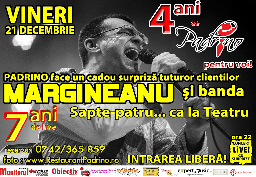 Padrino Suceava aniversează patru ani de la deschidere, iar Mihai Mărgineanu șapte ani de live.