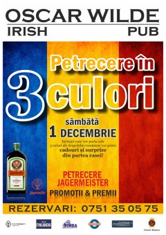 Sâmbătă, 1 Decembrie 2012, începând cu ora 23:00, Oscar Wilde Suceava te invită la Petrecere în trei culori.