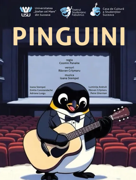 PINGUINI este un spectacol cu muzică live, versuri în rimă și cântece originale, gândit pentru copii, dar savurat cu plăcere și de adulți.
