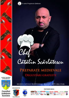 Duminică, 30 Iunie 2019, între orele 13:00 – 18:00, Muzeul Satului Bucovinean te invită la o întâlnire cu Chef Cătălin Scărlătescu va găti două preparate cu ingrediente care erau folosite în secolul al XV-lea.