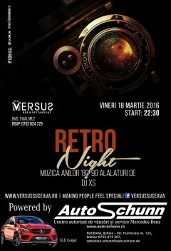 Retro Night Data18 mart. vin 22:30LocVERSUSComentarii0Trackbacks0 Vineri, 18 Martie 2016, începând cu ora 22:30, VERSUS te invită la petrecerea intitulată Retro Night alături de DJ XS. Tweet