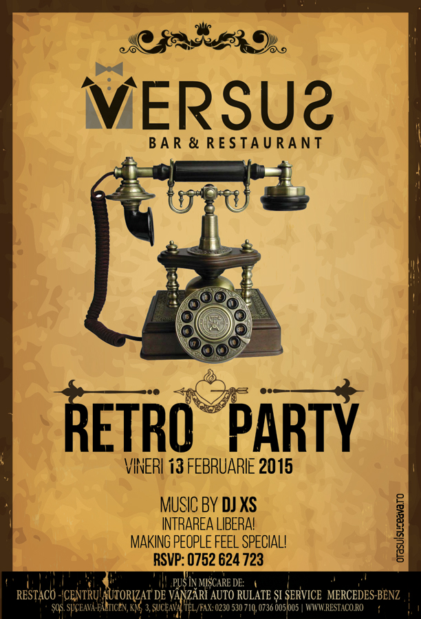 Retro Party Data13 feb. vin 22:30AccessgratuitLocVERSUSComentarii0Trackbacks0 Vineri, 13 Februarie 2015, începând cu ora 22:30, VERSUS Suceava te invită la petrecerea intitulată Retro Party alături de DJ XS. Tweet