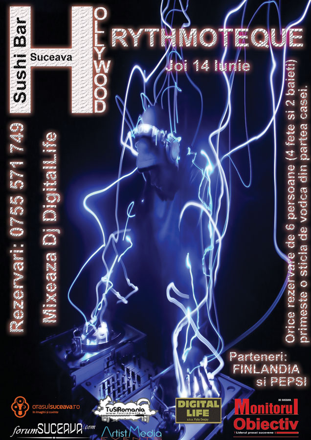 Rythmoteque Data14 iun. joi 23:00LocHollywood Sushi Bar SuceavaComentarii0Trackbacks0 Joi, 14 Iunie 2012, începând cu ora 23:00, Hollywood Sushi Bar Suceava te invită la Rythmoteque. Tweet