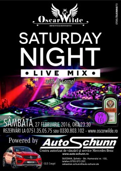 Sâmbătă, 27 Februarie 2016, începând cu ora 23:30, Oscar Wilde te invită la petrecerea intitulată Saturday Night Live Remix alături de DJ Cornel.