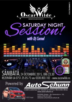 Sâmbătă, 24 Octombrie 2015, începând cu ora 23:30, Oscar Wilde Suceava te invită la petrecerea intitulată Saturday Night Session alături de DJ Cornel.