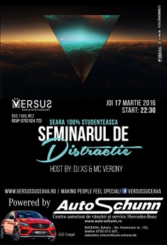 Seminarul de distracție Data17 mart. joi 22:30LocVERSUSComentarii0Trackbacks0 Joi, 17 Martie 2016, începând cu ora 22:30, VERSUS te invită la petrecerea intitulată Seminarul de distracție cu DJ XS și MC Verony. Tweet