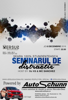 Seminarul de distracție Data08 dec. joi 22:30LocVERSUSComentarii0Trackbacks0 Joi, 8 Decembrie 2016, începând cu ora 22:30, VERSUS te invită la petrecerea intitulată Seminarul de distracție alături de XS și Sanchez. Tweet
