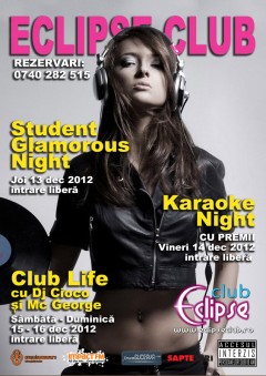 Student Glamorous Night Data13 dec. joi 22:00AccessgratuitComentarii0Trackbacks0 Joi, 13 Decembrie 2012, începând cu ora 22:00, Club Eclipse White Sensation Suceava te invită la Student Glamorous Night. Tweet