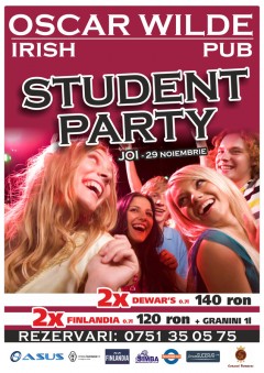 Student Party Data29 nov. joi 23:00AccessgratuitLocOscar WildeComentarii0Trackbacks0 Joi, 29 Noiembrie 2012, începând cu ora 23:00, Oscar Wilde Suceava te invită la Student Party. Tweet