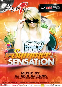 Sâmbătă, 25 Mai 2013, începând cu ora 22:30, Padrino Suceava te invită la Summer Sensation cu DJ XS și DJ Funk.