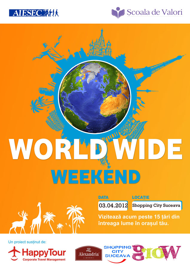 Marți, 3 Aprilie 2012, începând cu ora 11:00, Shopping City Suceava te invită la prima ediţie a târgului internaţional World Wide Weekend din cadrul proiectului GROW.
